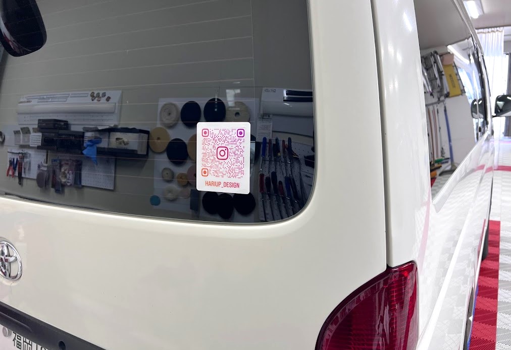 貼りアップのステッカーは表面にUVカットラミネートを施した屋外耐候性の高いステッカーで車のやリアガラスや給油口に最適です。