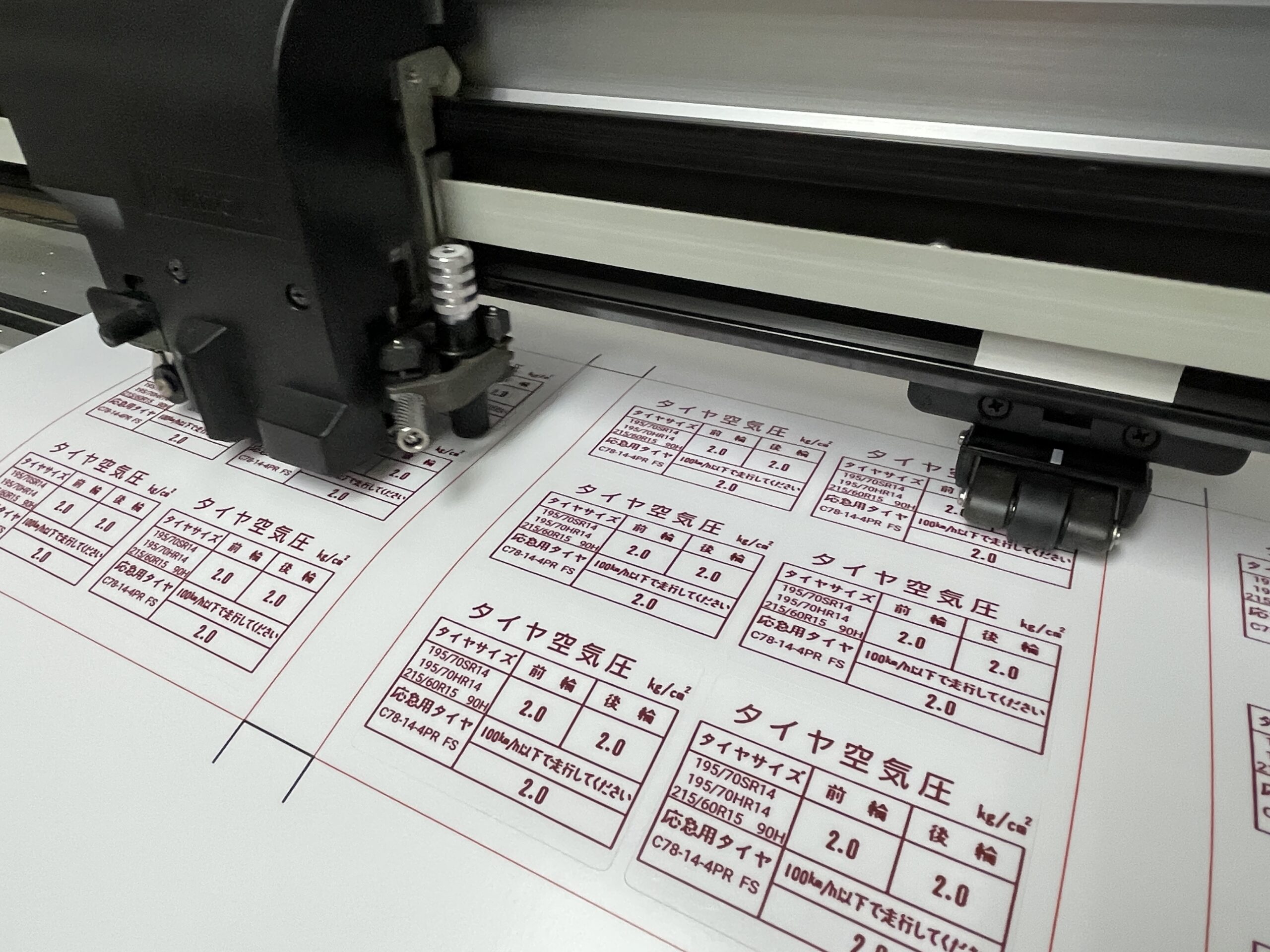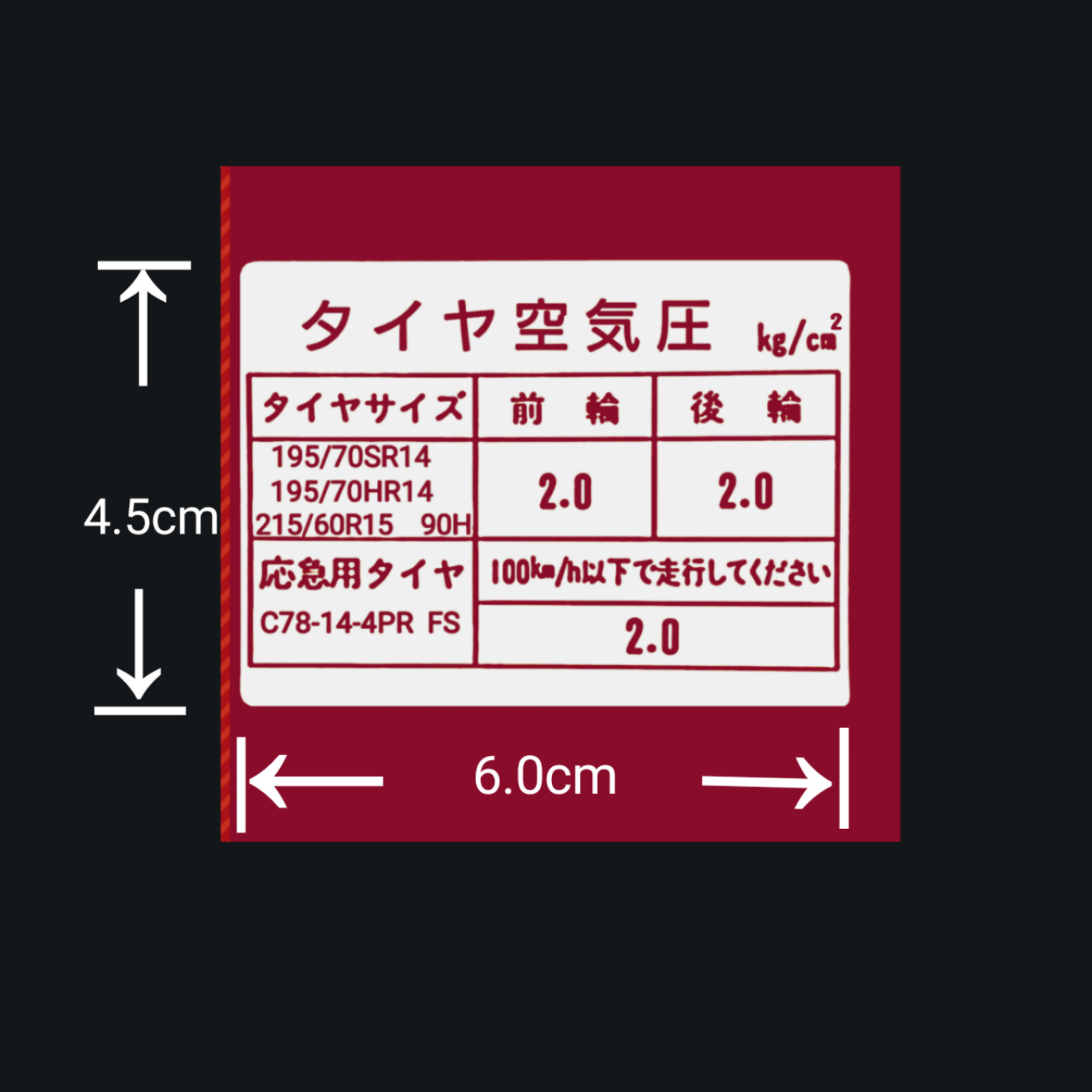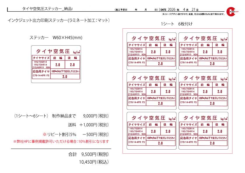 タイヤ空気圧ステッカーのご依頼を頂きました。 黒字バージョン作成後、赤字バージョンもご注文いただきました。